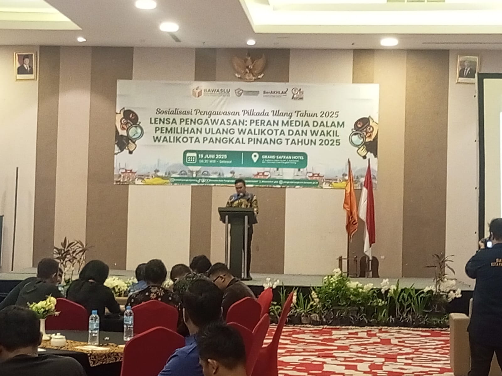PANGKALPINANG, KATABABEL.COM – Badan Pengawas Pemilu (Bawaslu) Kota Pangkalpinang menyelenggarakan kegiatan Sosialisasi Pengawasan Pilkada Ulang 2025 bertajuk “Lensa Pengawasan: Peran Media dalam Pemilihan Ulang Wali Kota dan Wakil Wali Kota Pangkalpinang Tahun 2025” yang digelar di Hotel Grand Safran, Kamis (19/6/2025).