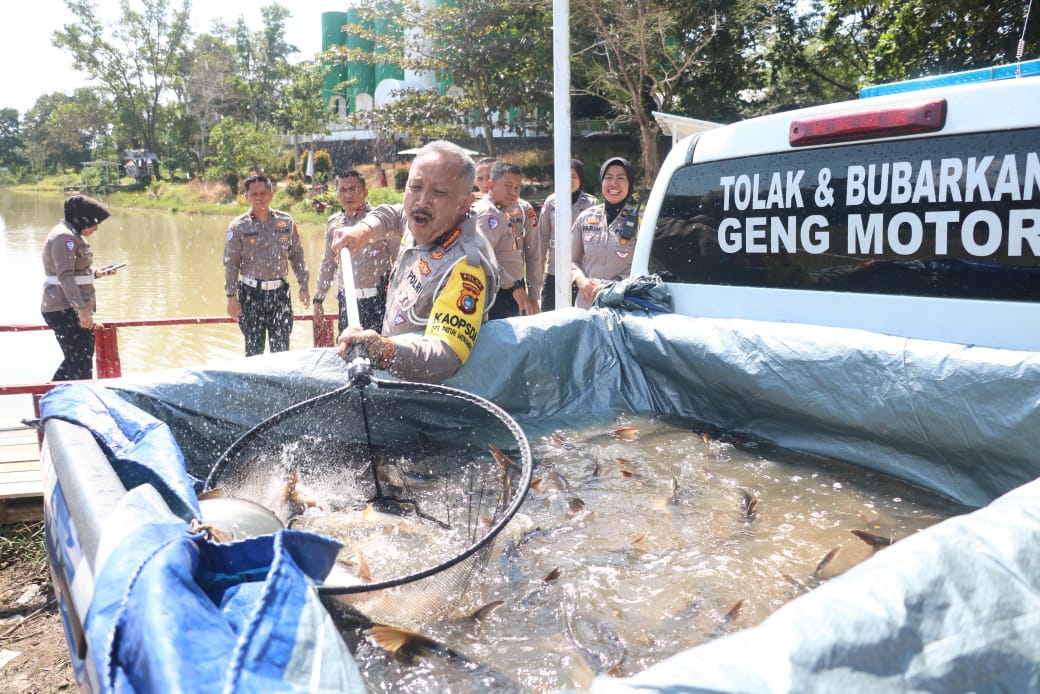 “Alhamdulillah, hari ini kita melanjutkan jukrah dari Pak Kapolda untuk kembali melepaskan sebanyak kurang lebih 500 ekor ikan patin di danau ini,”kata Pringadhi usai pelepasan.