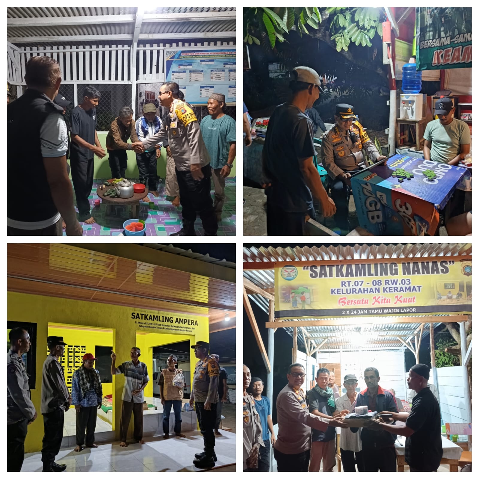 Sebagai bentuk dukungan, Kapolresta juga menyerahkan bantuan sarana kontak berupa senter, rompi jaga, jas hujan, jam dinding, tongkat Polri, borgol, dan roti bakar kepada petugas Satkamling. Bantuan ini merupakan apresiasi atas dedikasi warga dalam menjaga keamanan lingkungan.
