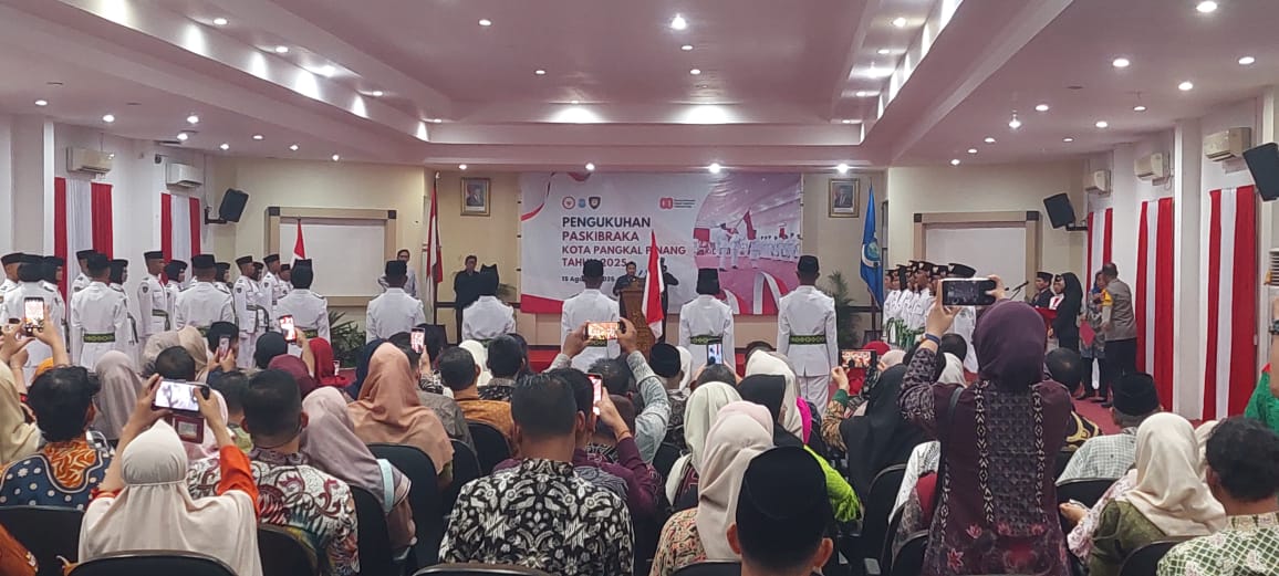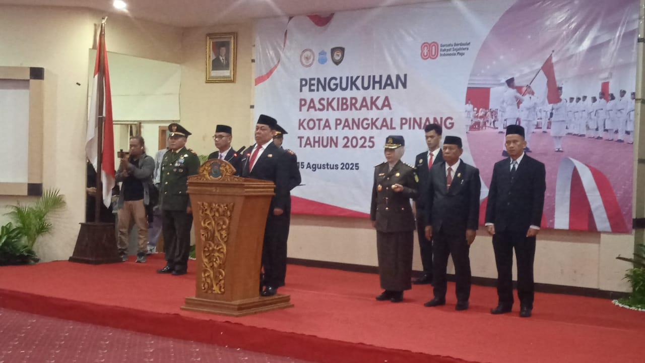 PANGKALPINANG, KATABABEL.COM – Penjabat (Pj) Wali Kota Pangkalpinang, M. Unu Ibnudin, mengukuhkan Pasukan Pengibar Bendera Pusaka (Paskibraka) Tingkat Kota Pangkalpinang Tahun 2025 di Balai Betason, Kantor Wali Kota Pangkalpinang, Jumat (15/8/2025).