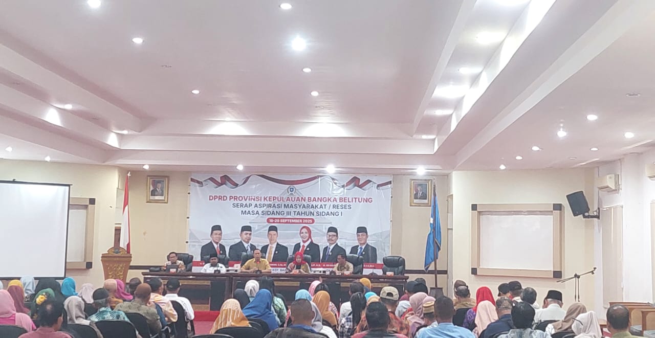 PANGKALPINANG, KATABABEL.COM – DPRD Provinsi Kepulauan Bangka Belitung (Babel) menggelar reses masa sidang III tahun sidang I di Ruang Betason, Kantor Wali Kota Pangkalpinang, Kamis (18/9/2025). Kegiatan yang dimulai pukul 09.00 WIB ini menjadi wadah bagi masyarakat untuk menyampaikan aspirasi, kebutuhan, hingga keluhan langsung kepada wakil rakyat.