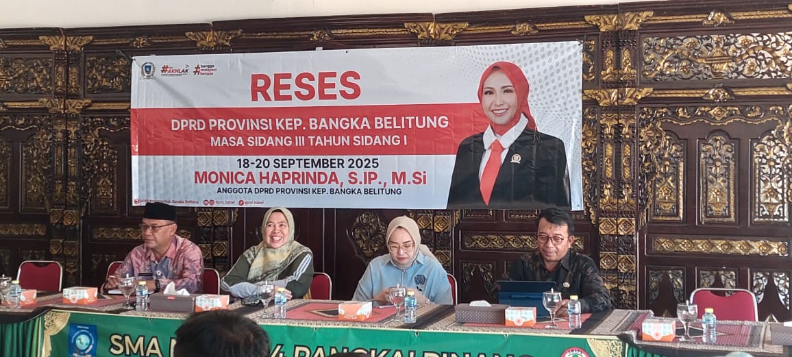 PANGKALPINANG, KATABABEL.COM – Anggota DPRD Provinsi Kepulauan Bangka Belitung, Monica Haprinda, S.IP, M.Si, menggelar kegiatan reses masa sidang III tahun sidang I di SMA Negeri 4 Pangkalpinang, Jumat (19/9/2025).