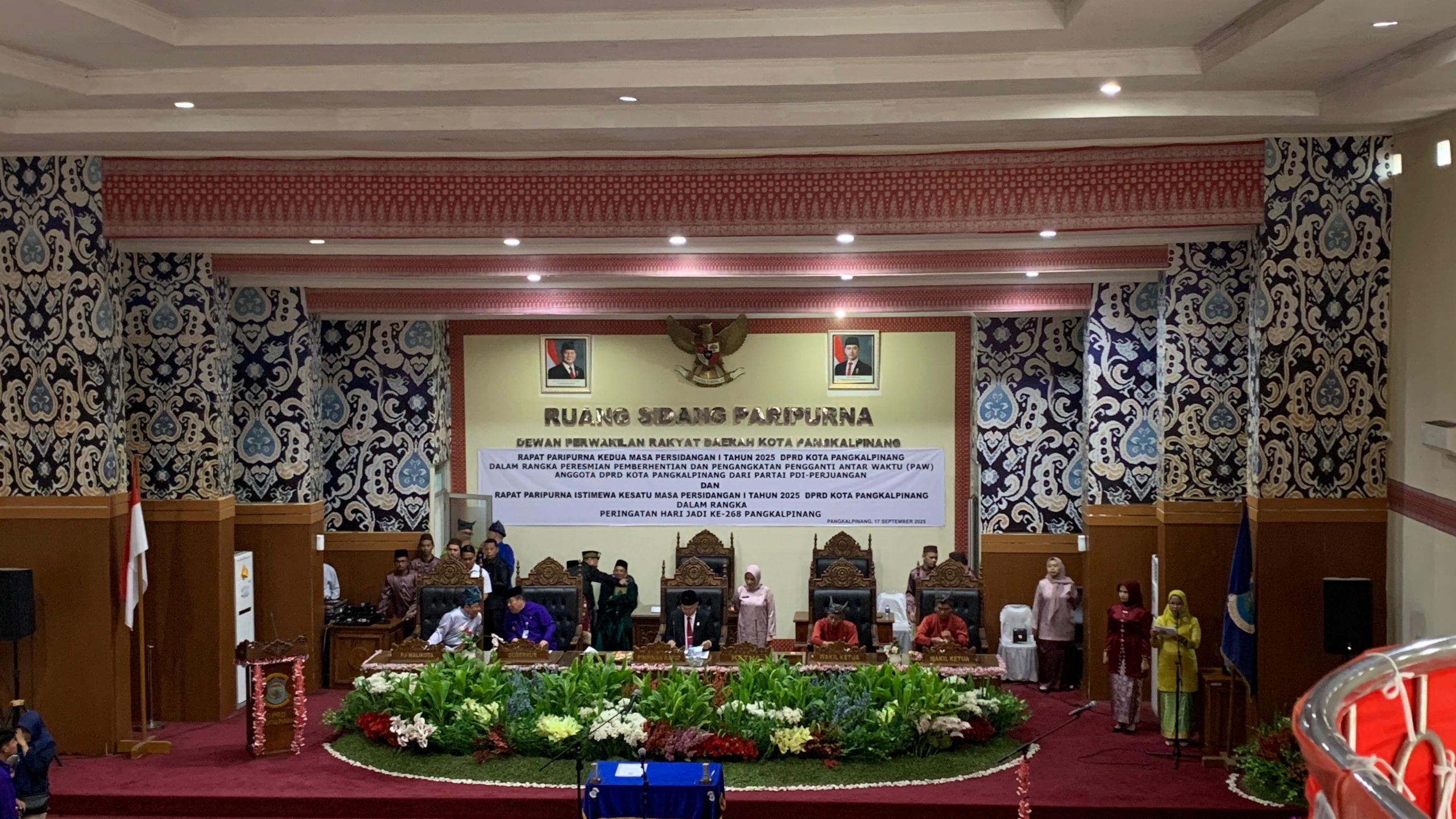 PANGKALPINANG, KATABABEL.COM – DPRD Kota Pangkalpinang menggelar Rapat Paripurna Istimewa Kesatu Masa Persidangan I Tahun 2025 pada Rabu (17/9/2025). Agenda ini menjadi bagian dari peringatan Hari Jadi ke-268 Kota Pangkalpinang yang berlangsung khidmat di Gedung DPRD setempat.