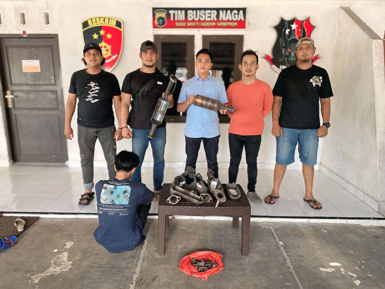Berdasarkan laporan polisi LP/B/448/VIII/2025/RESKRIM/POLRESTA PANGKALPINANG/POLDA BABEL, Tim Buser Naga melakukan penyelidikan dan akhirnya menemukan keberadaan pelaku. Saat diinterogasi, E mengaku telah berulang kali melakukan pencurian dengan modus memotong knalpot menggunakan alat grinda untuk mengambil katalis, kemudian menjualnya melalui jasa ekspedisi.