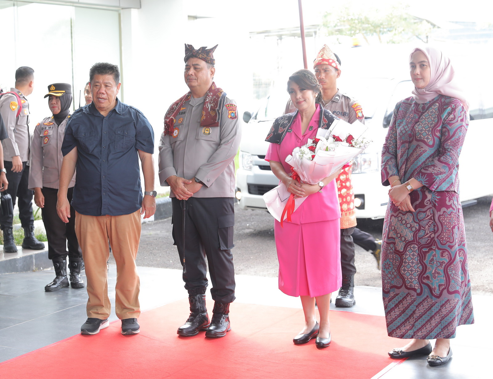 PANGKALPINANG, KATABABEL.COM – Gubernur Kepulauan Bangka Belitung (Babel) Hidayat Arsani di dampingi Ketua Tim Penggerak Pemberdayaan dan Kesejahteraan Keluarga (TP PKK) Babel Noni Hidayat dan Irjen Pol Hendro Pandowo, beserta jajaran Forkopimda, menyambut langsung kedatangan Kepala Kepolisian Daerah (Kapolda) Babel yang baru, Irjen Pol Dr. Viktor T. Sihombing bersama istri, Molly Viktor Sihombing di Terminal VIP Bandara Depati Amir, Jumat (30/10/2025) pagi.