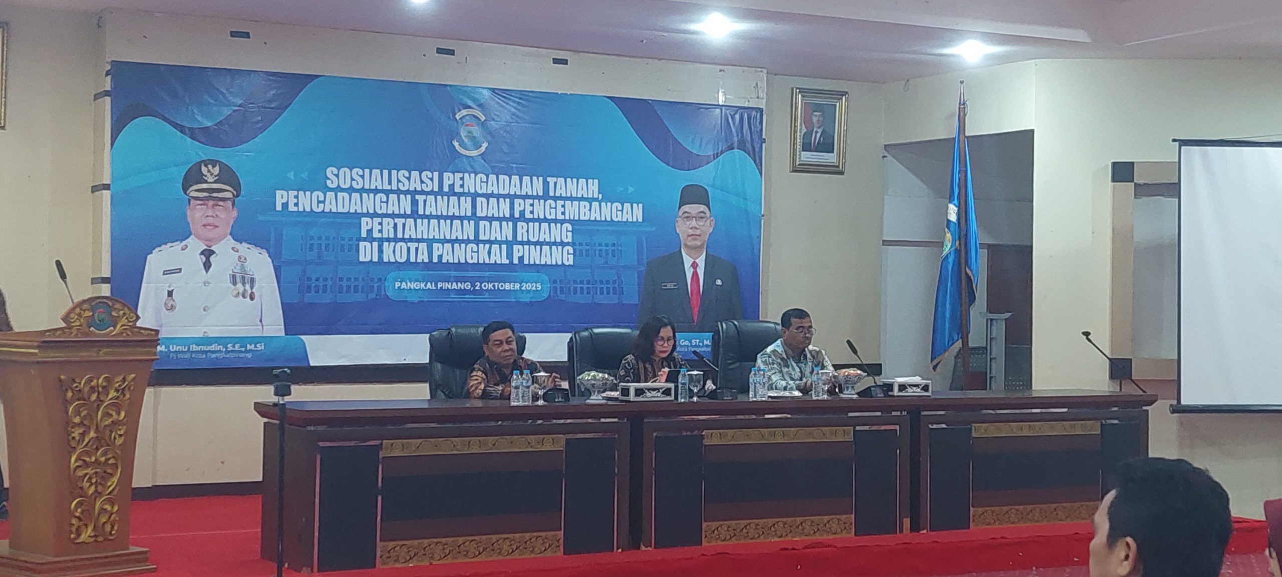 PANGKALPINANG, KATABABEL.COM – Penjabat (Pj) Wali Kota Pangkalpinang, M. Unu Ibnudin, menghadiri kegiatan Sosialisasi Pengadaan Tanah dan Pengembangan Pertanahan dan Ruang yang berlangsung di Balai Betason Kantor Wali Kota Pangkalpinang, Kamis (2/10/2025).