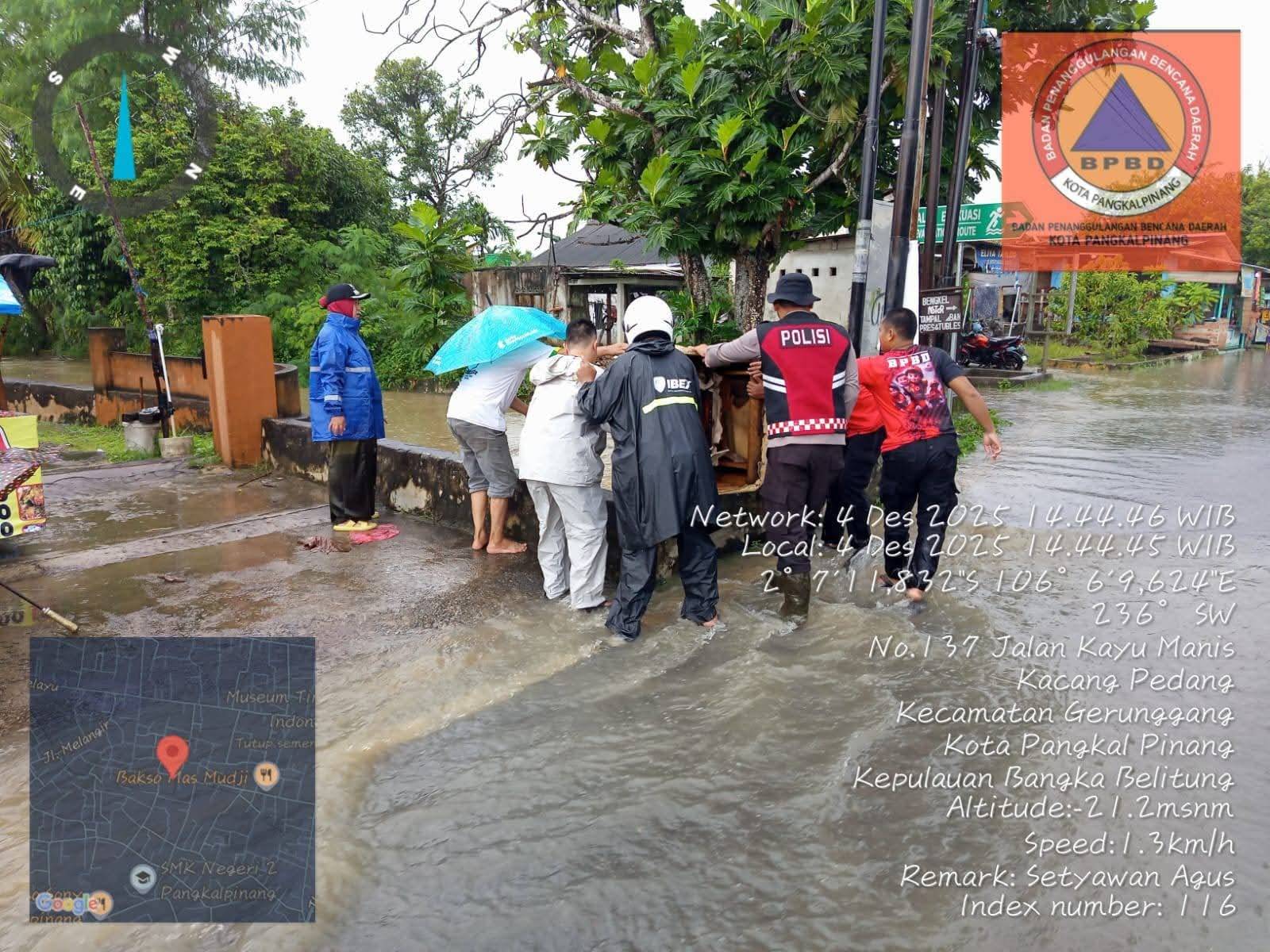 PANGKALPINANG, KATABABEL.COM — Hujan deras dengan intensitas tinggi yang mengguyur Kota Pangkalpinang sejak Kamis siang (4/12/2025), menyebabkan sejumlah wilayah, terutama daerah pesisir dan dataran rendah, mengalami banjir.