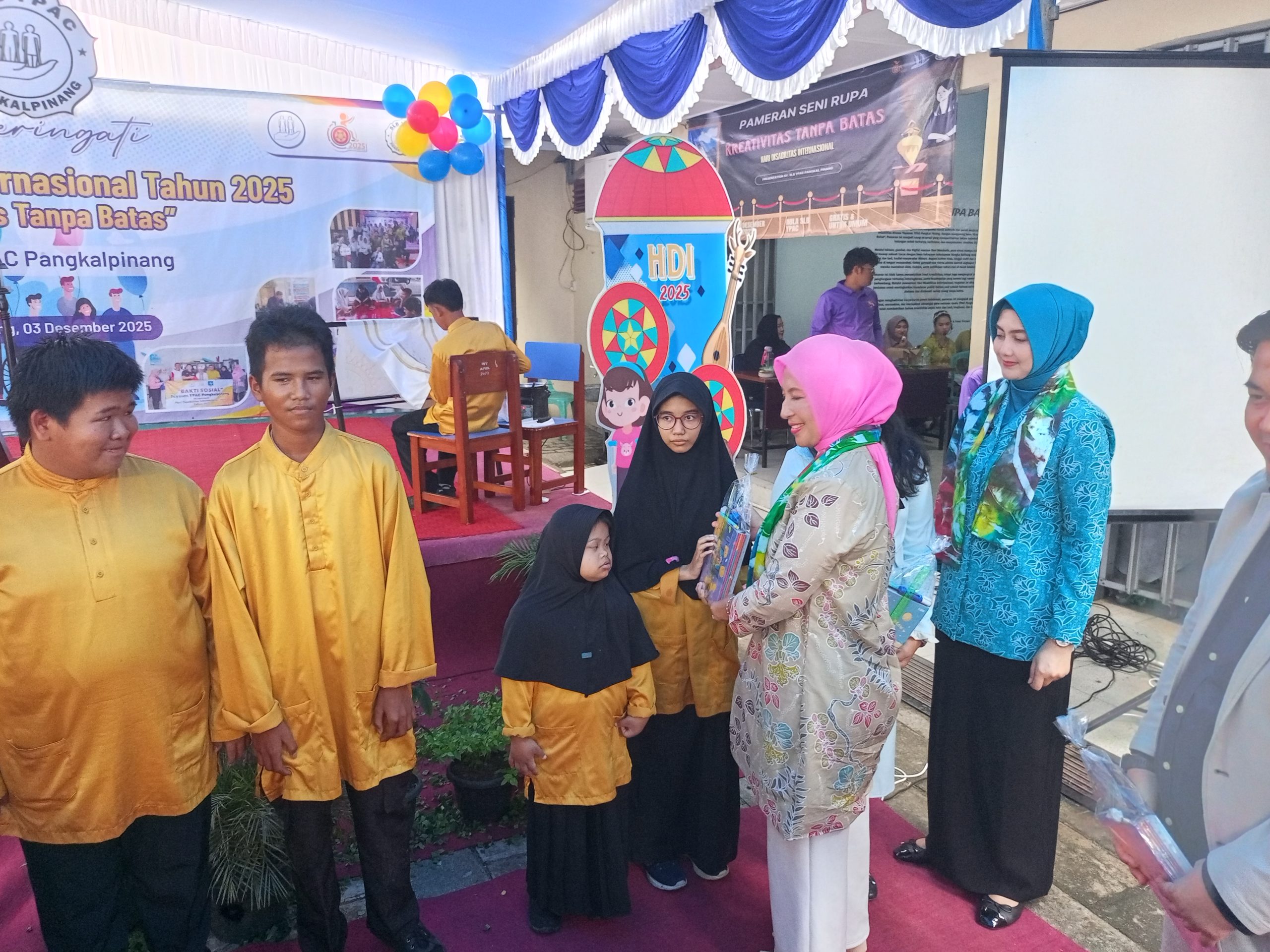 PANGKALPINANG, KATABABEL.COM — Ketua TP PKK Kota Pangkalpinang, Susanti Saparudin, menjadi salah satu tokoh penting yang hadir dan memberikan dukungan penuh pada peringatan Hari Disabilitas Internasional (HDI) Tahun 2025 di Yayasan YPAC Pangkalpinang, Rabu (3/12/2025). Kehadirannya mendapat apresiasi besar karena PKK Kota Pangkalpinang selama ini dikenal aktif dalam kegiatan sosial dan pemberdayaan penyandang disabilitas.