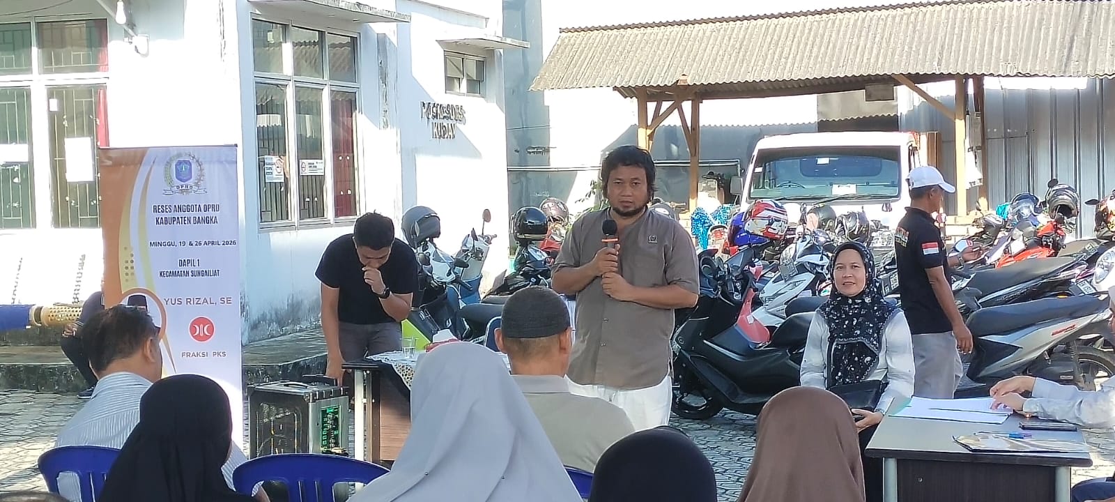SUNGAILIAT, KATABABEL.COM — Anggota DPRD Kabupaten Bangka dari Daerah Pemilihan (Dapil) 1 Kecamatan Sungailiat, Yus Rizal dari Fraksi PKS, menggelar kegiatan reses di Kantor Lurah Kudai, Minggu (26/4/2026).